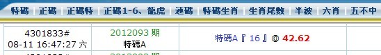 開獎日期:08月11日(012093期)