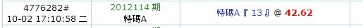 開獎日期:10月02日(012114期)