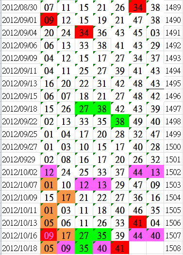 開獎日期:10月18日(012120期)