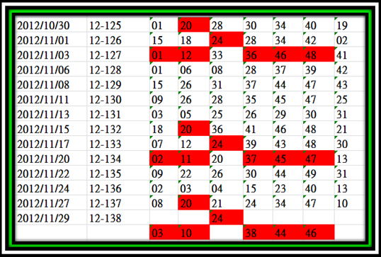 開獎日期:12月01日(012139期)