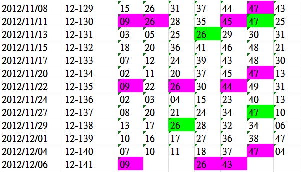 開獎日期:12月06日(012141期)