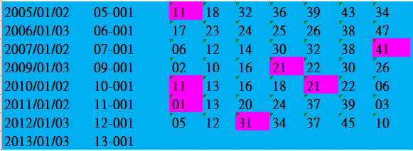 開獎日期:0103(013001期)