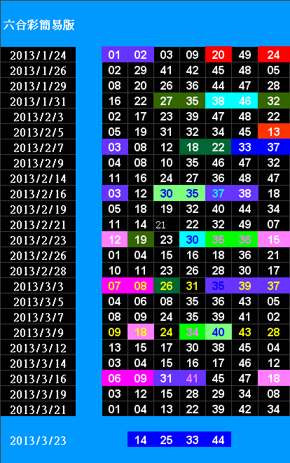 開獎日期:03月23日(013033期)