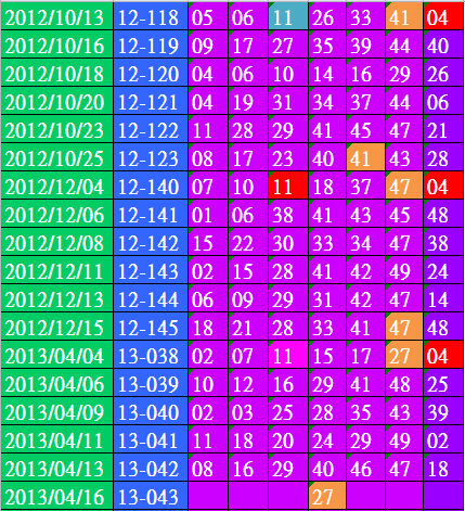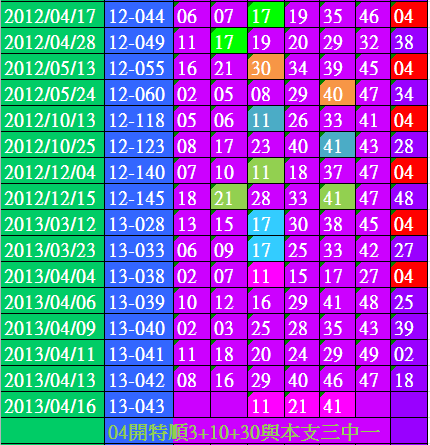 開獎日期:04月16日(013043期)