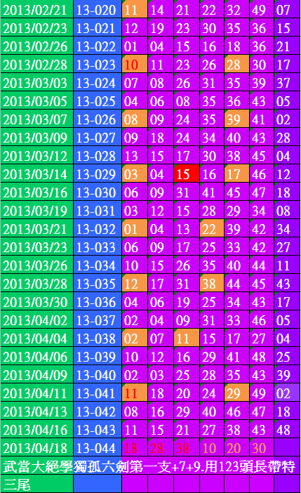 開獎日期:04月18日(013044期)