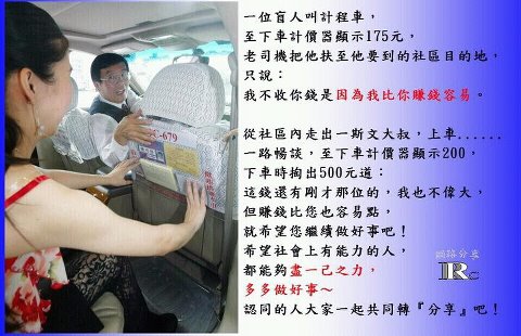 為現在的別人做善事也是為了將來的自己 = = 傳遞溫暖,拒絕冷漠