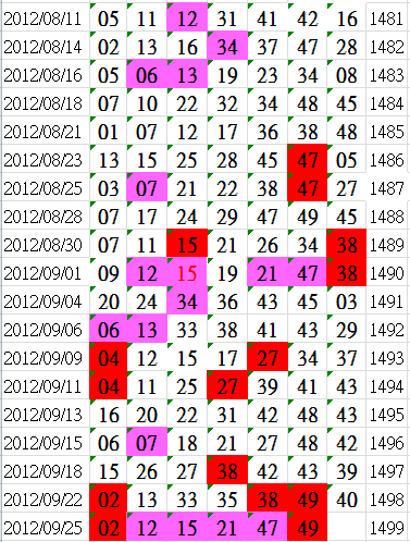 期數 = 12112-> [6/7] 預測碼 == 07 / 17 / 22 / 35 / 36 /