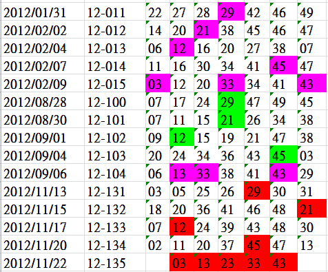 開獎日期:11月22日(012135期)