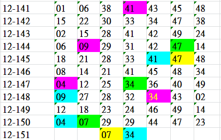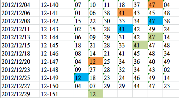 開獎日期:12月29日(012151期)