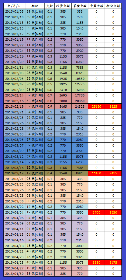 開完就放掉換當期特別號在從0.1坐起一次最多也坐到5支