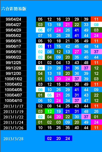 開獎日期:0328(013035期)