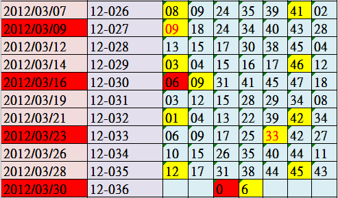 開獎日期:0330(013036期)