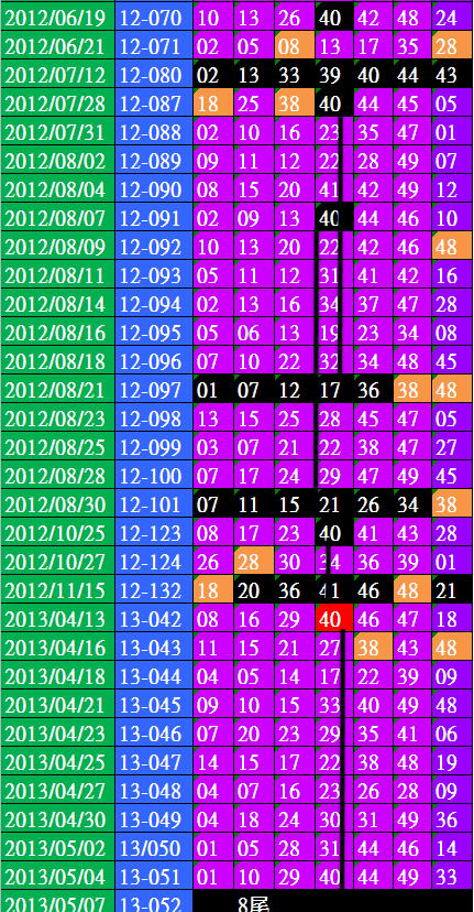 開獎日期:05月07日(013052期)